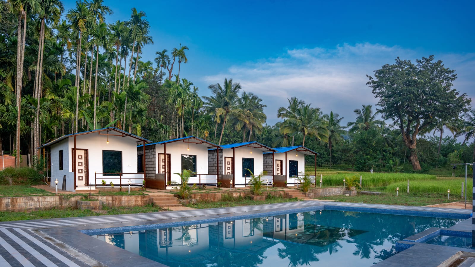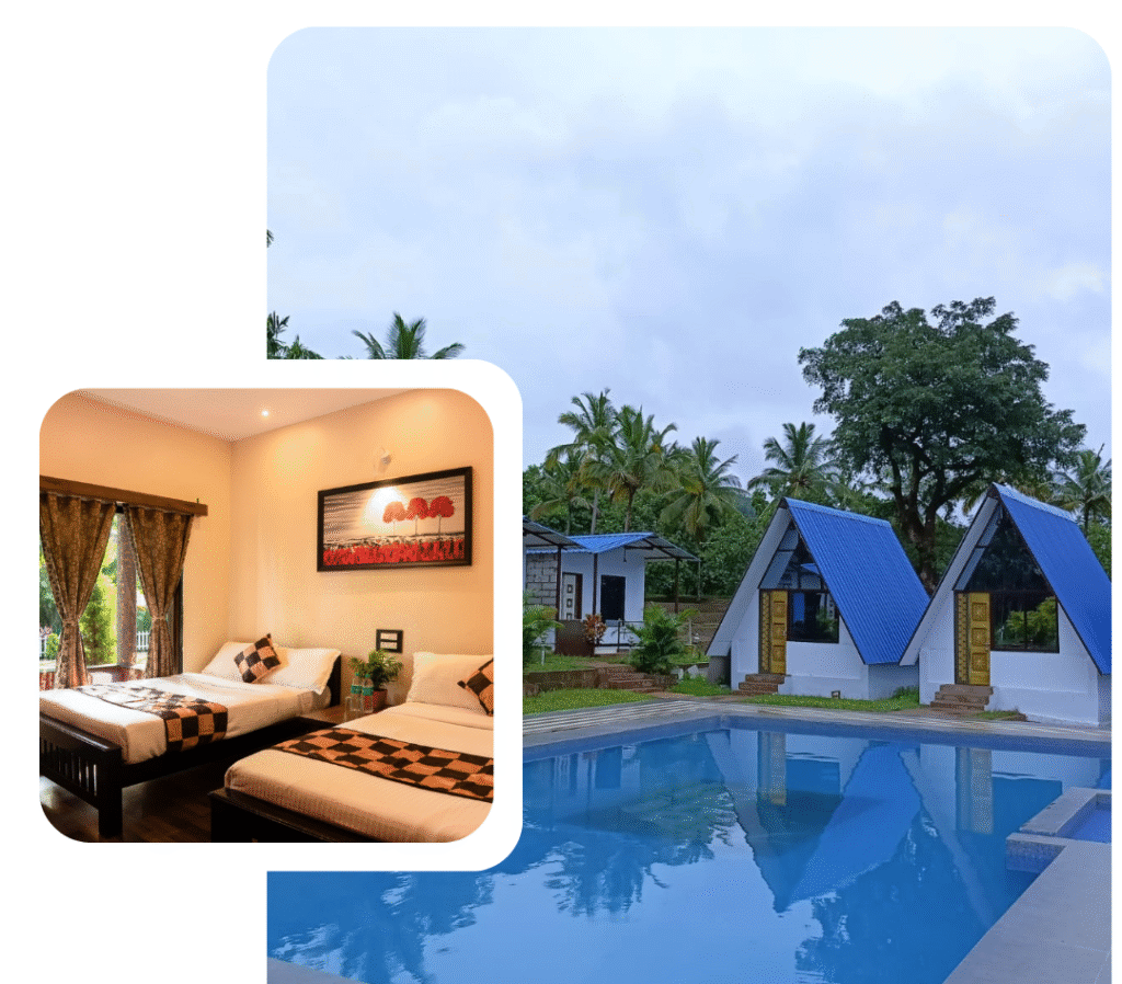 Savor tasty vegetarian and non-vegetarian dishes with breakfast, lunch, and dinner included. Dive into adventure with activities like swimming, pond boating, kayaking, pedal boating, zip line, archery, trekking, and more. Cool off under the natural waterfalls, join the fun rain dance, sit by the common campfire, and enjoy a range of indoor and outdoor games — all surrounded by the scenic beauty of Dandeli.